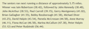 The responses above are thoughtful, informative and revealing of his attitude to the sports. He refers to Derek McGinley who was a much under rated coach. Derek coached only boys at first and then followed the athletes as they grew older. Although he seemed to prefer the endurance events, he worked to give the athletes under his guidance a taste for all events because they had different talents and he produced good athletes in the sprints, in endurance events, in the javelin and in the long jump. Obviously some moved to other club coaches for specialist guidance, often at Derek’s prompting, but all gained from his input. Phil, of course was a top class endurance athlete in his own right having won international honours on the track and over the country.